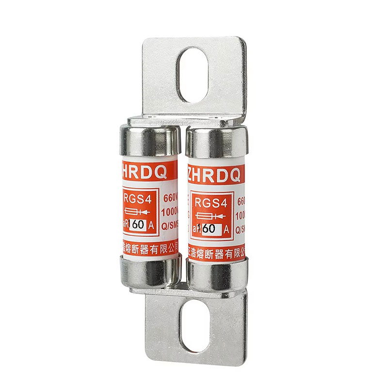 Користимо стандардну дебљину бакарну сребрну сребрну верзију РГС4 брзог осигурача, који има добру проводљивост. Користимо висококвалитетно керамичко тело и испуњени кварцни песак који је хемијски третиран како би се осигурала одлична расипација топлоте и гашење АРЦ-а. 660-1000В ВИ БОЛТ ФУСЕ такође се може користити за полуводичке компоненте и заштиту кратког споја (АР) и заштиту мотора (АМ), са називним напоном до 1000В, називну струју од 160А и радне структуре од 160А. Оцењени капацитет од 660-1000В вијке је до 80ка, који је у складу са ГБ13539 и ИЕЦ269 стандардима.