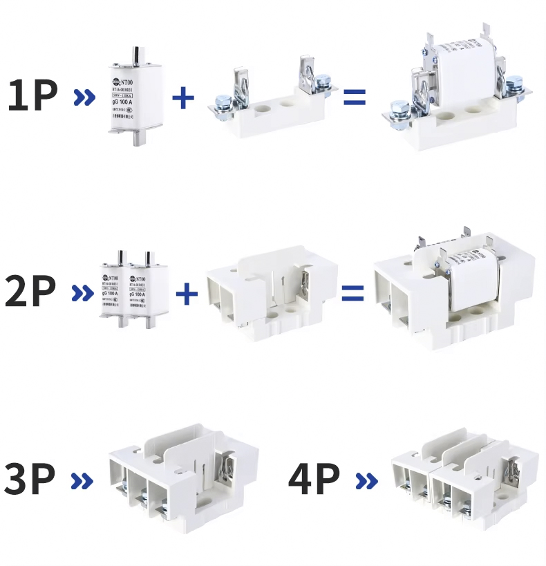 Прилагођени нисконапонски НТ00 АЦ 160А 500/690В високопрекидни керамички ножни држач осигурача је пројектован за безбедну и ефикасну заштиту кола у индустријским и комерцијалним применама. Овај држач је скројен за смештај НТ00 оштрих осигурача, обезбеђујући сигурну инсталацију и поуздане перформансе.