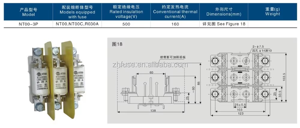 Ова серија осигурача састоји се од осигурачке везе и власника осигурача. НТ00-3П Осигурача је направљена од керамичких подова велике чврстоће или подова са високим температурама, са композитним статичким контактима у облику клина. То је отворена структура са добром расипацијом топлоте, високу механичку чврстоћу, поуздану везу и једноставан рад. НТ00-3П ФУСЕ база је компатибилна са овим серијама, а НХ ФУСЕ ДУЛЛЕР користи се за уклањање осигурача из базе. Љека осигурача од чистог бакра или сребрна лима (или сребрна жица) запечаћена је у тарифној цеви направљеној од керамике велике чврстоће.