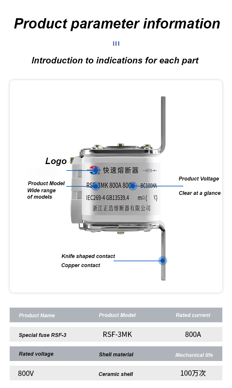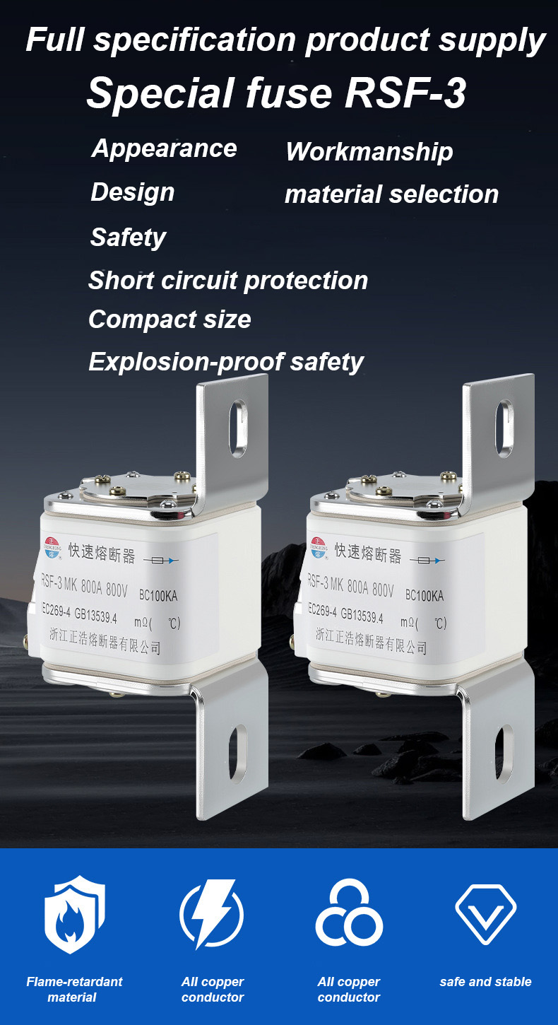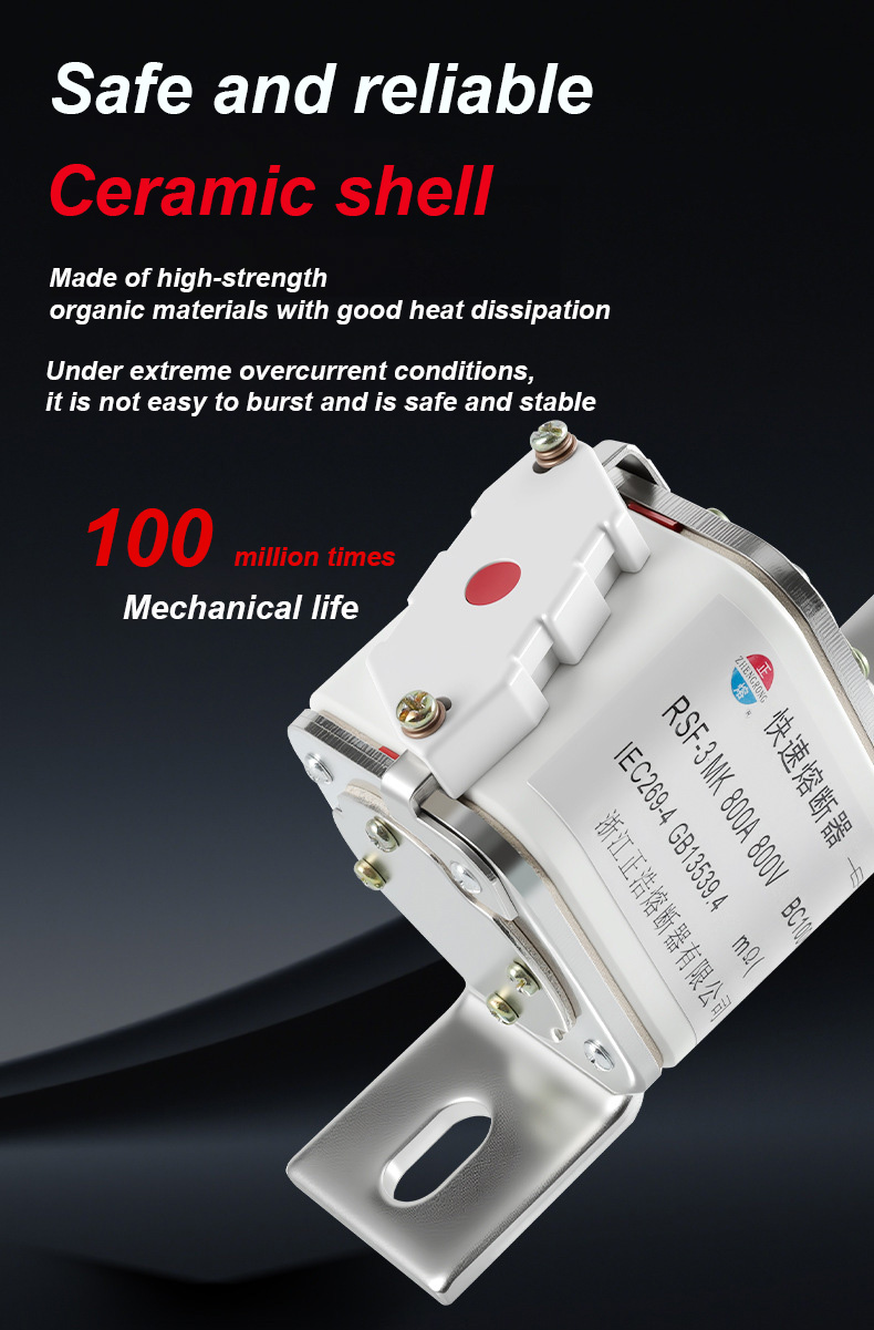 има називни напон од 500В и називну струју од 315А, што може ефикасно осигурати електричну сигурност, спречити преоптерећење и кратак спој. РСФ-3МК 800В-800А БЦ100КА везе осигурача